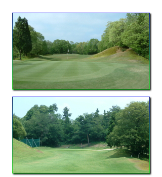 ホール中央より上り傾斜・FWから40センチの段差でグリーン・縦長のグリーン。