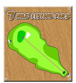 谷越えホール(ティーグラウンドよりFWは大きく窪んでいる)グリーンはやや受けぎみで横長(奥行せまい)グリーン周りはかなり広い。